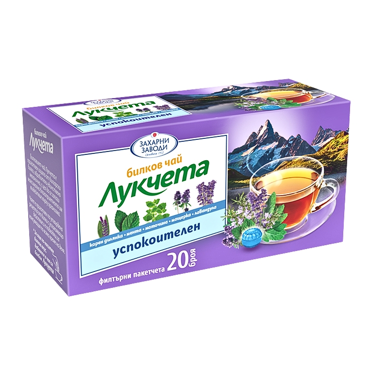 Билков чай „Лукчета“ – успокоителен е продукт на Захарни заводи, създаден по утвърдена билкова рецепта, която комбинира доказани растения с благоприятно действие върху нервната система и общото състояние на организма.