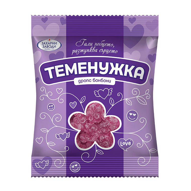 Произведени по класическа и изпитана рецепта, бонбоните Теменужка имат неповторимия вкус и красива флорална форма. Захарни Заводи продължава дългогодишната си мисия да съхранява вкусовете на миналото, създавайки продукти, които носят топлина и уют.