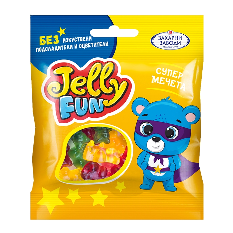 Желирани бонбони Жели Фън са меки, цветни и ароматни бонбони с разнообразни плодови вкусове и забавни форми на мечета. Те носят настроение и сладко удоволствие при всяка хапка и са предпочитан избор както от деца, така и от възрастни. Жели Фън бонбоните се отличават с мека желирана консистенция, ярки цветове и приятен плодов аромат. Те се топят леко в устата и предлагат балансирана сладост. Подходящи са за ежедневна консумация, детски партита, почерпки, подаръчни пакети и вендинг автомати.