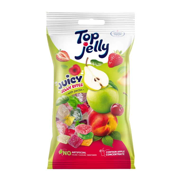 Top Jelly е наслада от най-доброто, което природата може да предложи – плодови аромати, извлечени от натурални екстракти, комбинирани с качествата на плодовия пектин, с вкус на ябълка, круша, нектарина, череша и ягода.